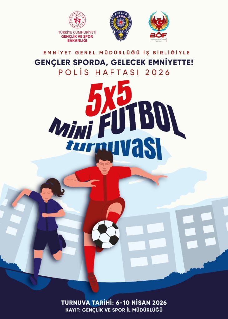 Diyarbakır’da Polis Haftası 2026 etkinlikleri kapsamında, gençleri sporla buluşturmayı amaçlayan anlamlı bir organizasyon hayata geçiriliyor. Gençlik ve Spor Bakanlığı ile Emniyet Genel Müdürlüğü’nün ortaklaşa düzenlediği “Gençler Sporda, Gelecek Emniyette!” 5×5 Mini Futbol Turnuvası için geri sayım başladı.